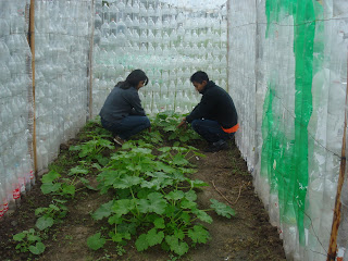 Esta solución surge como respuesta al problema que se presenta el modelo de invernadero original. Éste no resistía la fuerza del viento y no lograba gran estabilidad. De esta forma, se construyen las paredes a medida que se van juntando botellas plásticas, se hacen las columnas y se colocan tejiéndolas.